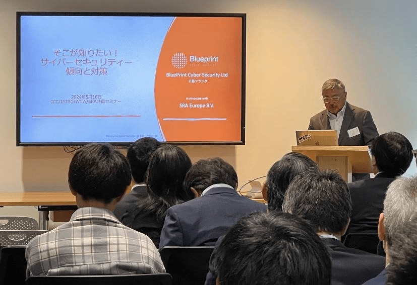 先週5月16日にJCC/JETRO/WTW/SRAの協賛セミナーで「そこが知りたい!サイバーセキュリテイ傾向と対策」と題してスピーカーとしてお話させて頂きました。